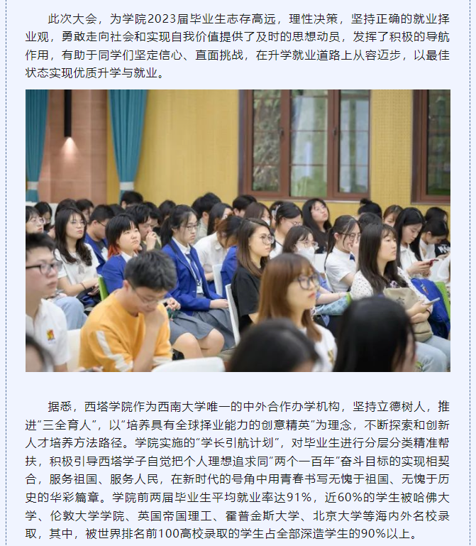 凝心聚力,点亮未来 | 太阳网集团tcy8722召开2023届毕业生升学就业动员大会
