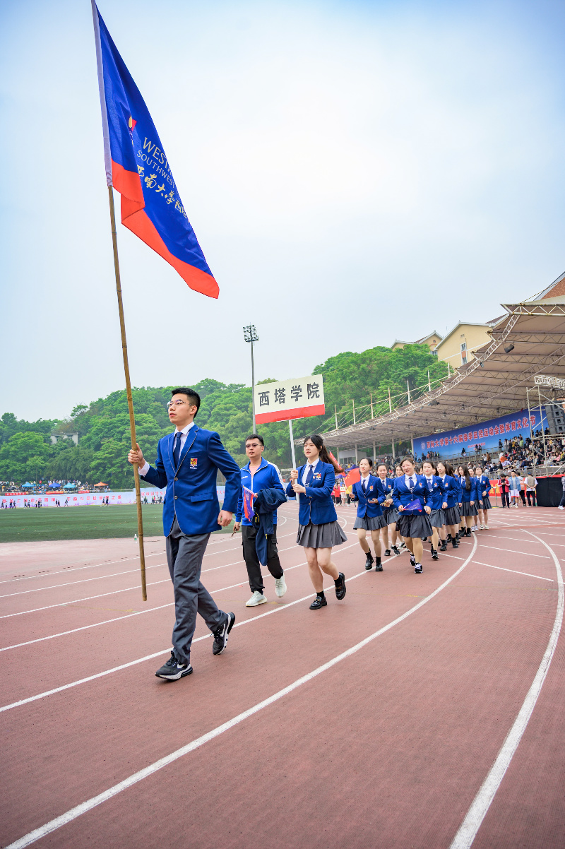入场式上,60名西塔学子身着独特的“西塔蓝”,列成方阵昂首挺胸走过第二运动场主席台,整齐划一的队列和坚韧有力的动作展现了新时代青年的昂然风貌。“青春西塔,英姿勃发”,铿锵洪亮的口号承载着西塔人对未来的高远志向和精益求精的拼搏精神;“百年伟业,共赴征途”,豪情万丈的宣言诠释着西塔人肩负使命、砥砺奋斗的初心。大方的院服,自信的神情,井然的队列,成为场上一道亮丽的风景,赢得了现场阵阵掌声。