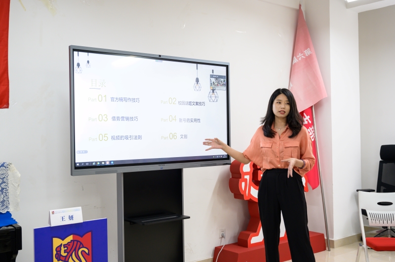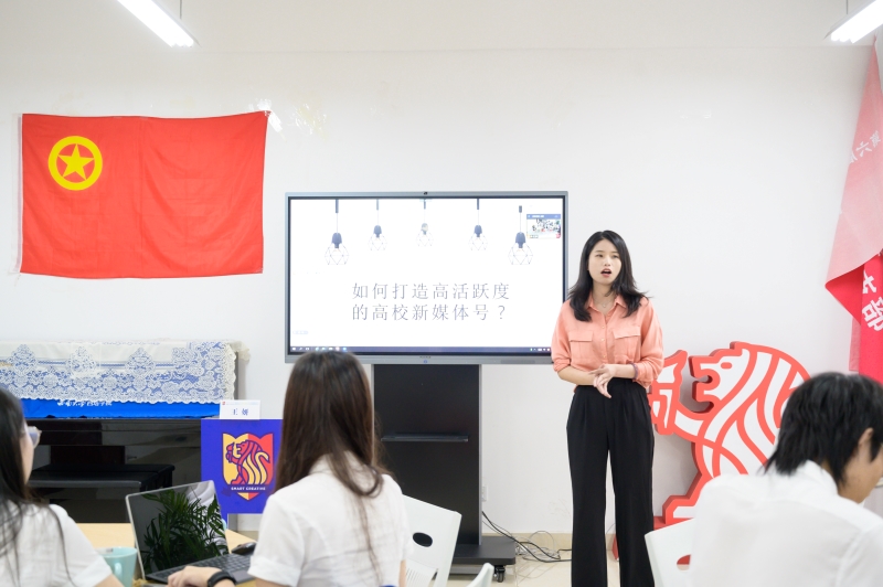 本次交流会首先由公司老师提出什么样的话题能够吸引读者以及吸引读者的有效路径有哪些,问题引发了在场师生的热烈讨论。团学骨干认为“生活情感、社会热点、学业提升、考研就业”等话题更容易受到高校读者的青睐,好标题能够直接吸引读者的眼球。接下来,王妍以如何打造高活跃度的高校媒体账号为切入点,强调了新媒体受众定位的重要性,高校媒体要打造出符合主旋律,满足受众需求的媒体调性。她表示,若是标题能够直击痛点、引起读者共鸣、助力问题解决,便能引发用户超高关注度。她还介绍了“借势营销”和“吸引法则”的技巧,分享了借助社会事件、传统节日、热门音乐、焦点人物、流行影视等方式提供新鲜内容,并且突出亮点。