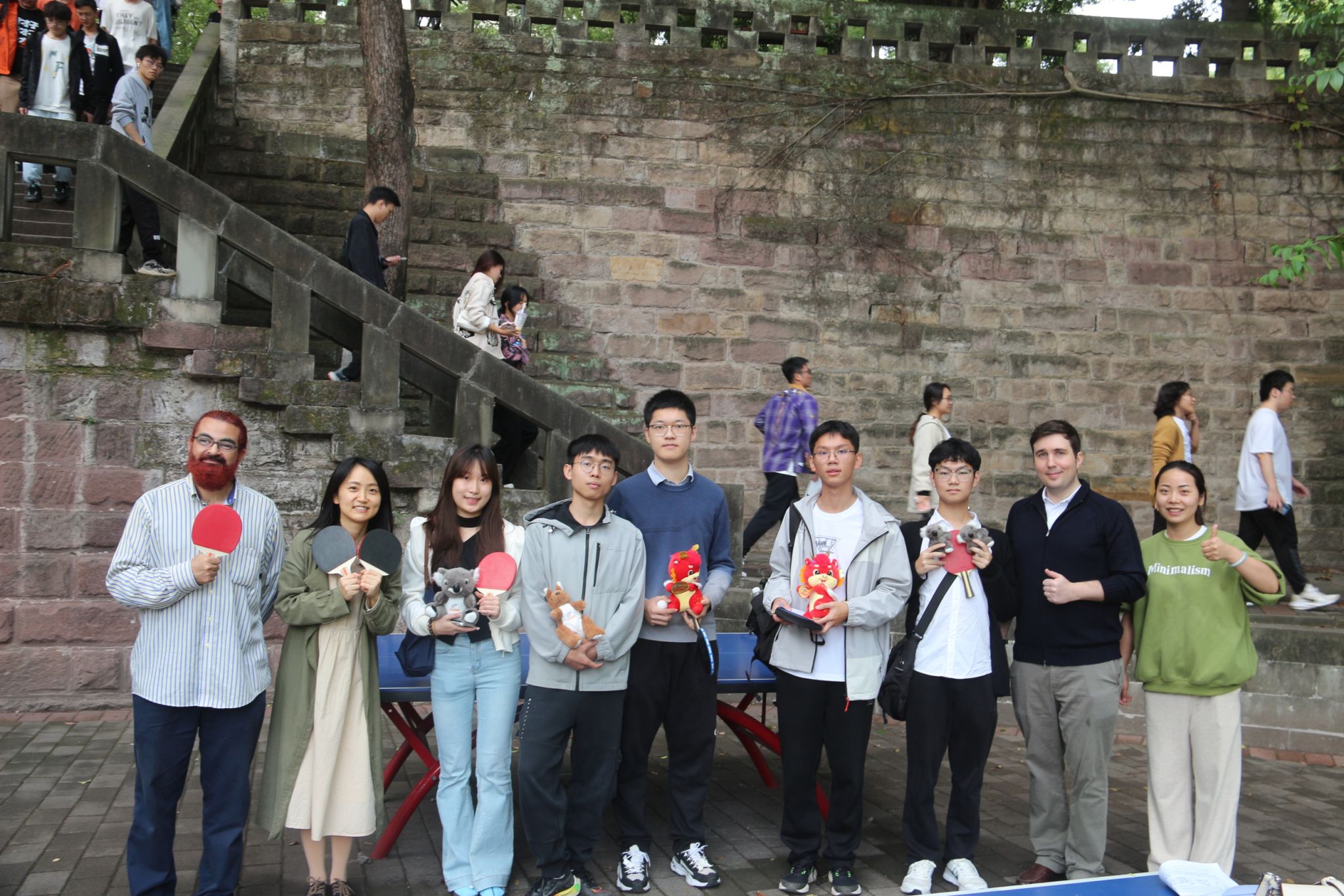 师生们首先快速熟悉了乒乓球的常用英语,用全英文讨论乒乓球规则,为接踵而来的比赛蓄能。然后,大家组队酣战,观众们用英语加油助威,现场不仅是体能与技巧的博弈,更是英语实战的舞台。小组们在比赛之前充分进行战术商讨、积极与外教Luke、Basem互动、团队默契逐渐形成。最后,外教Luke、Basem为获胜的5支获胜队伍颁发了精美礼品。