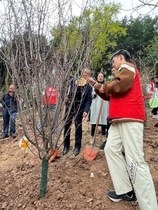 同组的张诗佩深有同感:"作为西塔学子,能为校园美化贡献力量,倍感光荣。"她指着相邻的几棵树苗补充道,"我期待着这些树苗茁壮成长,也盼望着更多同学加入守护校园的行列,让我们的学习环境永远绿意盎然。"