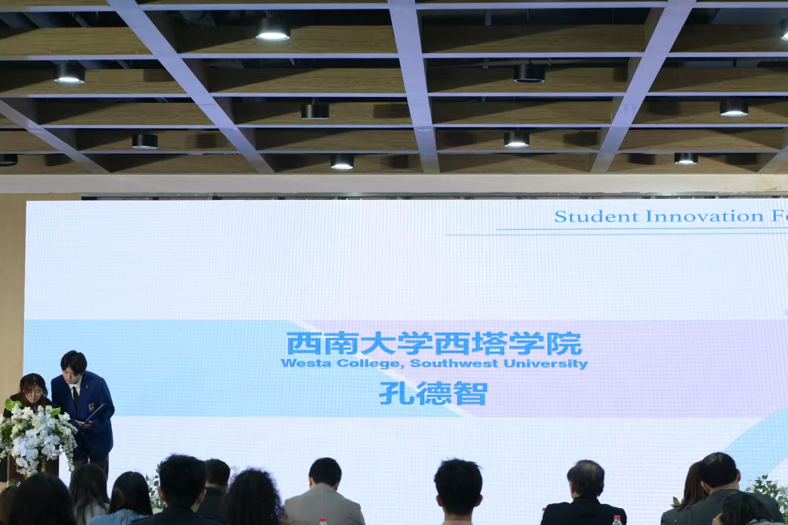 在闭幕式上,公司代表孔德智再次受邀发言。他对论坛为中外合作办公司校提供如此珍贵的交流平台表达了由衷感谢,并表示在此次论坛中结识了众多优秀的员工干部,收获颇丰。最后,孔德智同学代表太阳网集团tcy8722为四川大学匹兹堡公司及员工创新论坛送上了最诚挚的邀请。