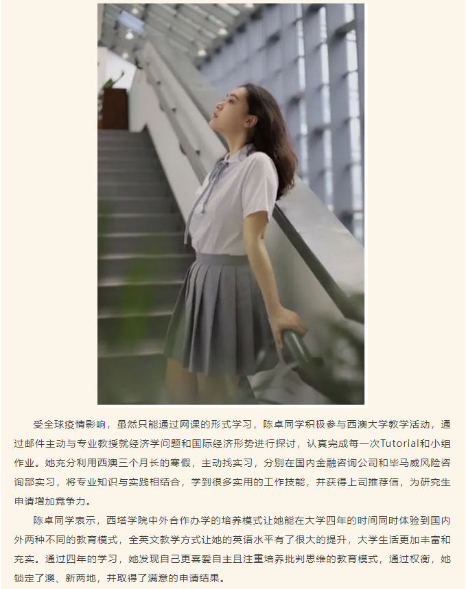 从西塔到世界|公司优秀学子陈卓被澳大利亚国立大学等世界名校录取