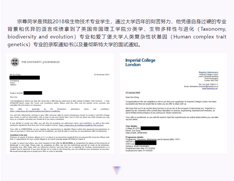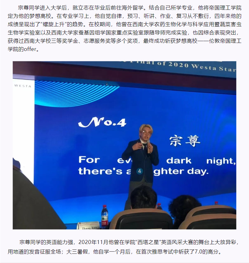 从西塔到世界|公司优秀学子宗尊被帝国理工公司等世界名校录取