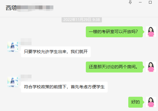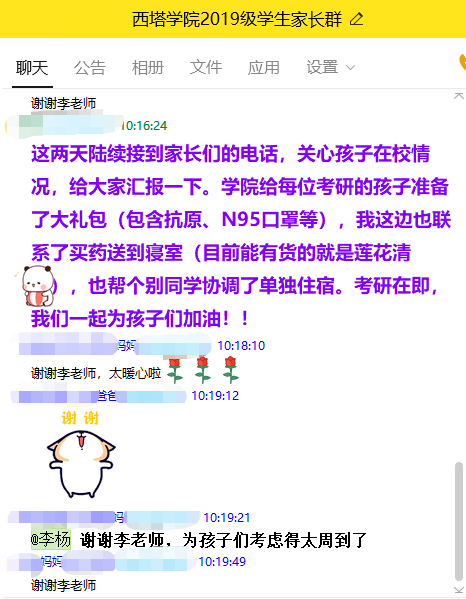 受疫情影响,公司封校一个多月,公司党委书记王静、经理赵玉芳、副书记滕超带领公司教职工冲峰在一线,为考研学子保驾护航,积极落实考研自习室。多次开展谈心谈话,勉励同学们合理安排复习时间,叮嘱同学们要及时调整好心理和身体状态,提醒同学们要做好个人防护,以饱满的状态迎接人生中的一次大考。