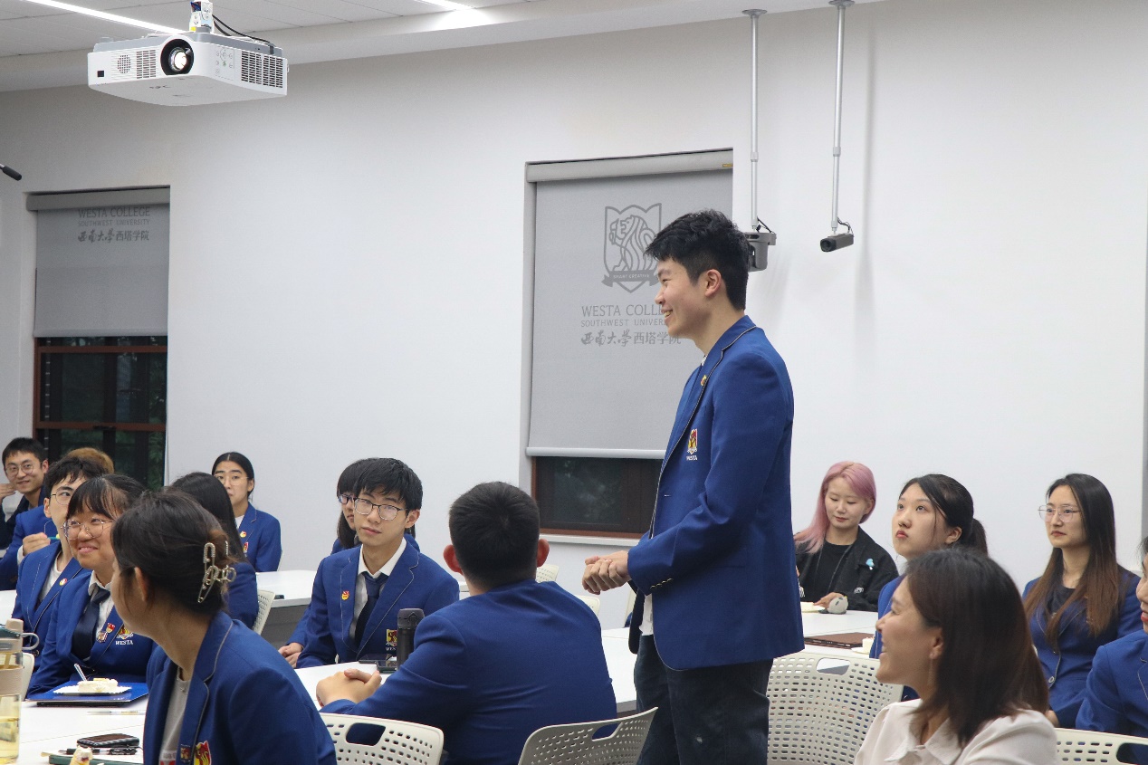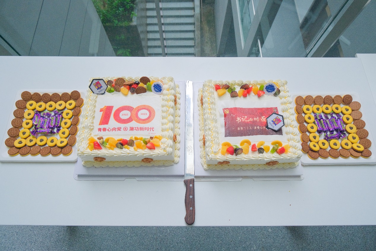 Westa食品科学社的同学们为本次活动还精心设计制作了蛋糕。在分享心得体会环节,2019级生物技术专业江雪纯,以“栉风沐雨越百年,乘风破浪绽芳华”为主题,结合她创作的院歌《西塔之光》,分享了其作为一名青年党员和共青团员工干部应该心怀家国之念,常葆进取之心,激扬青春梦、奋进新时代;2019级食品质量与安全专业彭宣淇,感谢公司为同学们搭建的平台,他谈了对青春的理解,并以习近平总书记的七年知青故事以及身边优秀老师的青春奋斗故事为例,阐述了奋斗与努力于青春的重要意义;2020级经济学专业高艺珂认为,作为新时代青年,要拥有不畏艰险、冲锋在前的信仰,不断提高自己的学习能力和学术能力,用知识为青春赋能,奋斗前行,在新时代的赛道上跑出最好成绩。