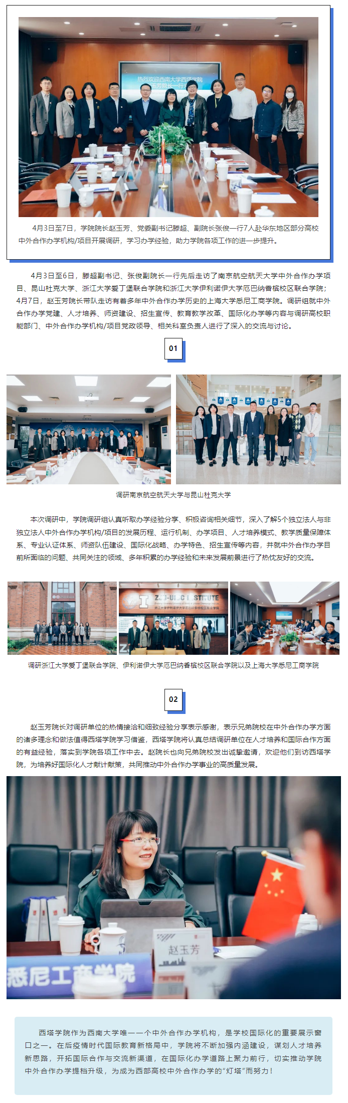 公司经理赵玉芳一行赴华东地区中外合作办学机构/项目开展调研