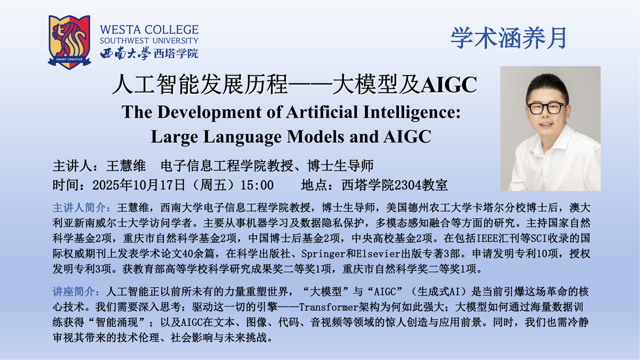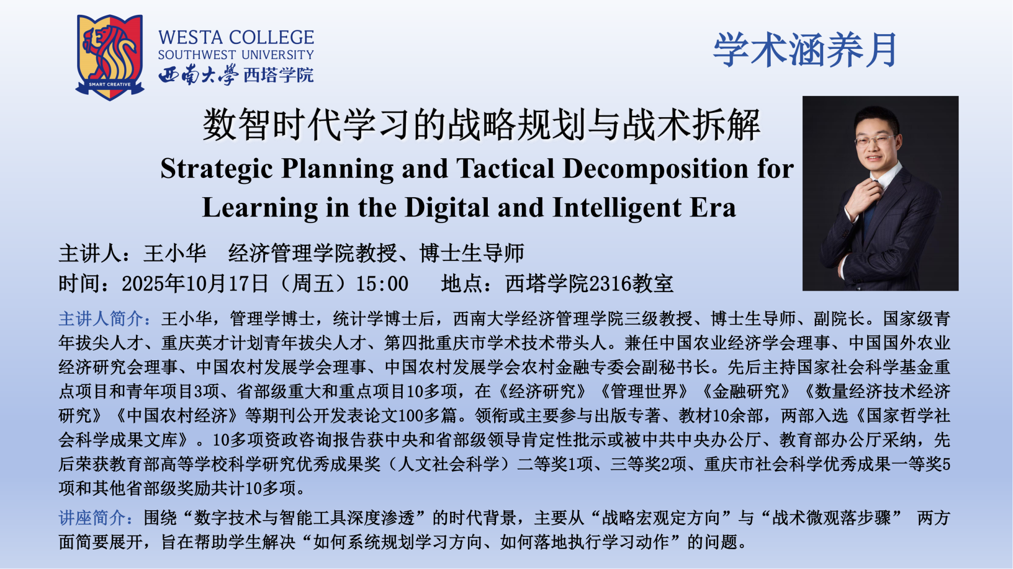 【西塔讲堂(Westa Forum)】第15期活动预告