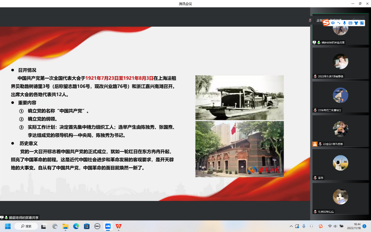 11月18日晚,公司党委副书记、纪委书记滕超为第七期入党积极分子暨第四期老员工骨干培训班线上讲授“党的一大到二十大的光辉历程”主题党课。公司正科级组织员秦蓉和全体培训班学员线上认真聆听。