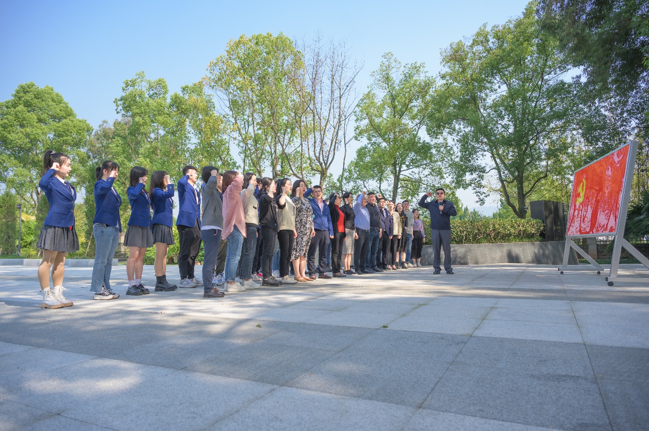师生一行在静观镇参观王朴烈士陵园红色基地,王朴中学师生志愿者们深情地讲解了烈士的英雄事迹。大家认真聆听,缅怀英雄先烈,接受革命精神洗礼。公司党委书记王静同志带领到场师生在王朴烈士墓碑前默哀鞠躬,并依次为英烈敬献鲜花,表达对英烈的崇敬与追思。面对鲜红的党旗,公司党委组织委员、副经理张俊同志庄严领誓,大家一起重温入党誓词,进一步增强理想信念。