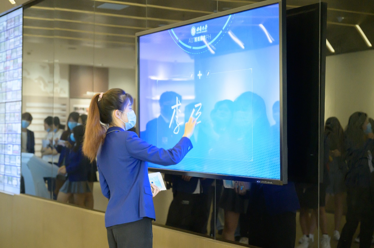 参观接近尾声时,毕业生党员们纷纷在多媒体留念墙上写下祝愿,并表示:“在将来的学习和工作中,要继续强化自己的责任与担当,时刻牢记党员身份,发挥先锋模范带头作用,以更加饱满的热情和昂扬的姿态走上人生的新台阶。” 百年风雨兼程,苦难铸就辉煌。无数人的努力奋斗书写了波澜壮阔的百年党史。党员同志纷纷表示:作为新时代的年轻党员,应当从党史中汲取前行的力量,让红色的基因得以延续,不断锤炼党性修养,让党的光荣传统和优良作风在每一位党员的担当与践行中传承。