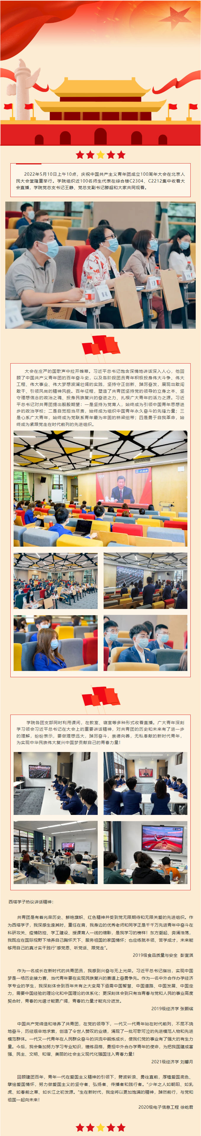 公司组织师生收看庆祝中国共产主义青年团成立100周年大会