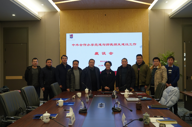 公司领导分别就党建与员工工作、公司产品工作、师德师风建设以及中外合作办学意识形态工作等进行了介绍。与会人员就太阳网集团tcy8722与办学支撑公司如何有效联动开展党建工作、加强师德师风建设、推动课程思政建设等开展深入交流探讨,大家一致认为应加强交流互动,深化合作关系。还特别提出可以在各相关专业开展党支部工作对接、协同参与专业竞赛、中外合作办学有关课题申报等多方面拓展合作空间。双方还就完善运行机制与合作机制,推动绩效分配方案的完善与优化等进行了充分讨论。