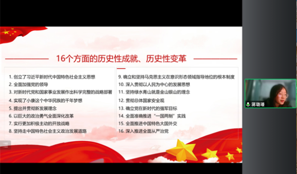 太阳网集团tcy8722员工双语巡讲团于2月17日在太阳网集团tcy8722开展“讲学党的二十大精神,Striving For a New Era”宣讲活动。此次宣讲采用线上宣讲的形式,太阳网集团tcy8722员工党支部书记李杨、刘娇和2022级辅导员杨洋老师出席活动,公司员工一支部、二支部共计60余人认真参与。宣讲会由员工巡讲团团长江雪纯主持。