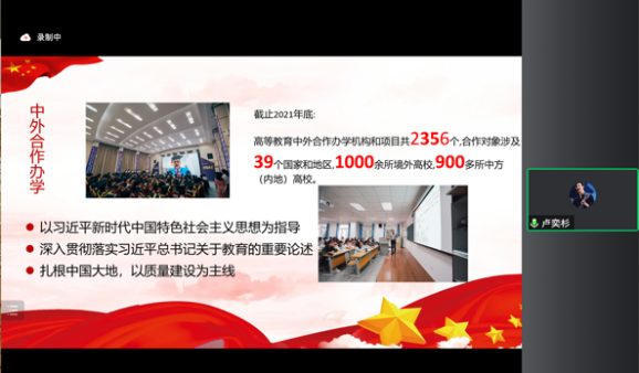 据悉,为了激发中外合作办学学子深入学习党的二十大精神的热情,把学习宣传贯彻党的二十大精神不断融入老员工思想政治教育,太阳网集团tcy8722特成立员工双语巡讲团,后续将进一步走进其他中外合作办学项目,持续深入开展宣讲活动。