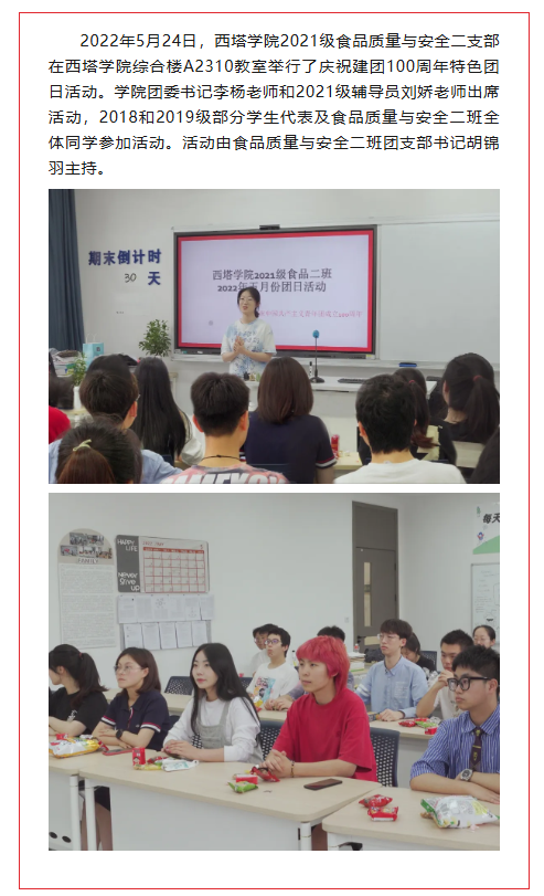 传五四薪火,庆建团百年 | 太阳网集团tcy87222021级食品质量与安全二支部举行庆祝建团100周年特色团日活动