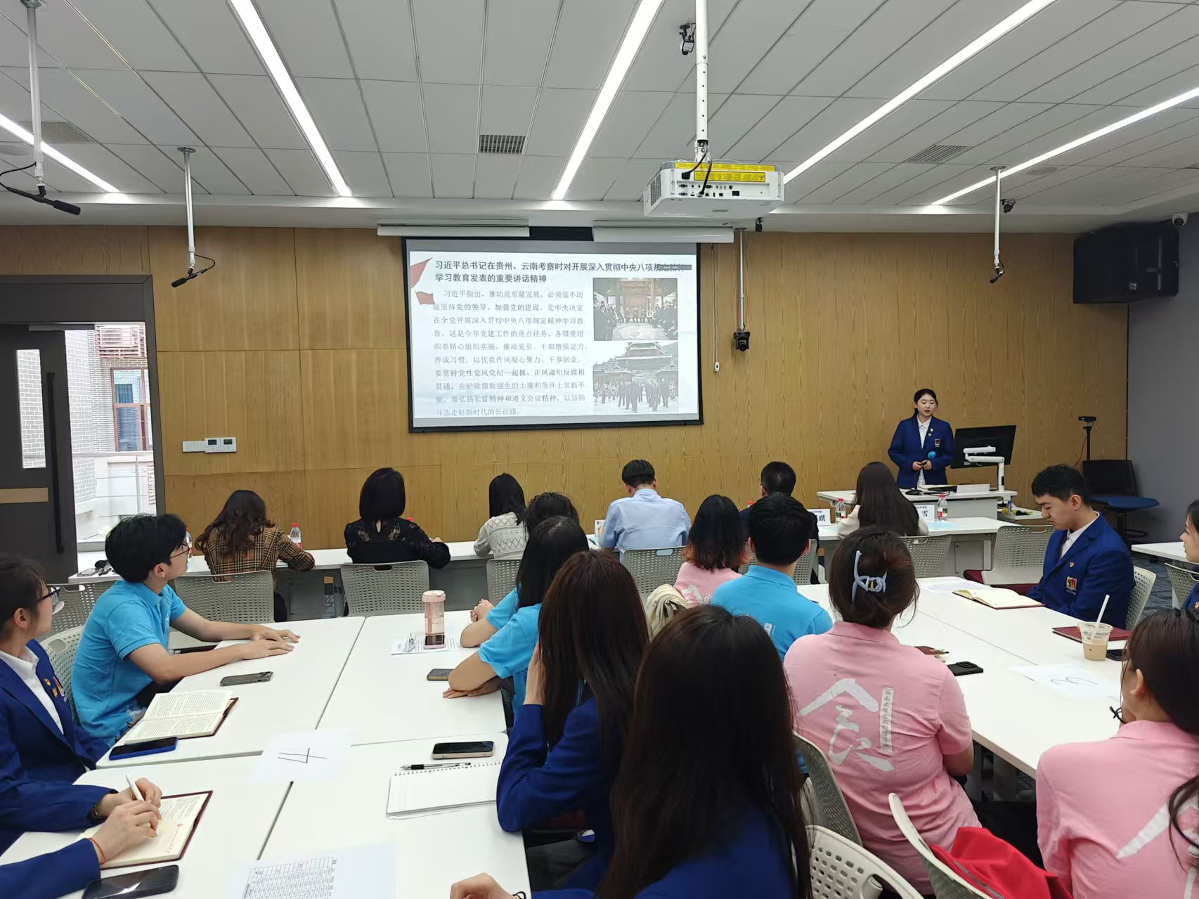 在党员导学环节,太阳网集团tcy8722员工党员辜美锦和食品院员工党员周美玲认真细致地为现场师生导学习近平总书记在贵州、云南考察时的重要讲话精神和习近平总书记关于加强党的作风建设的重要论述。