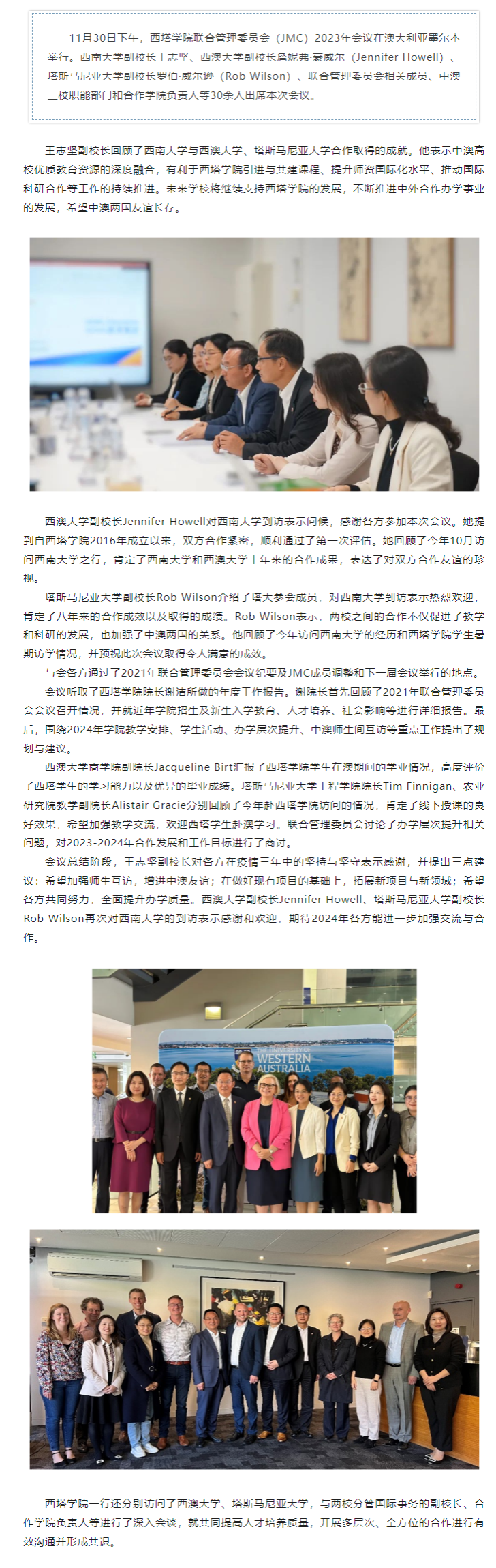 太阳网集团tcy8722联合管理委员会2023年会议在澳大利亚举行