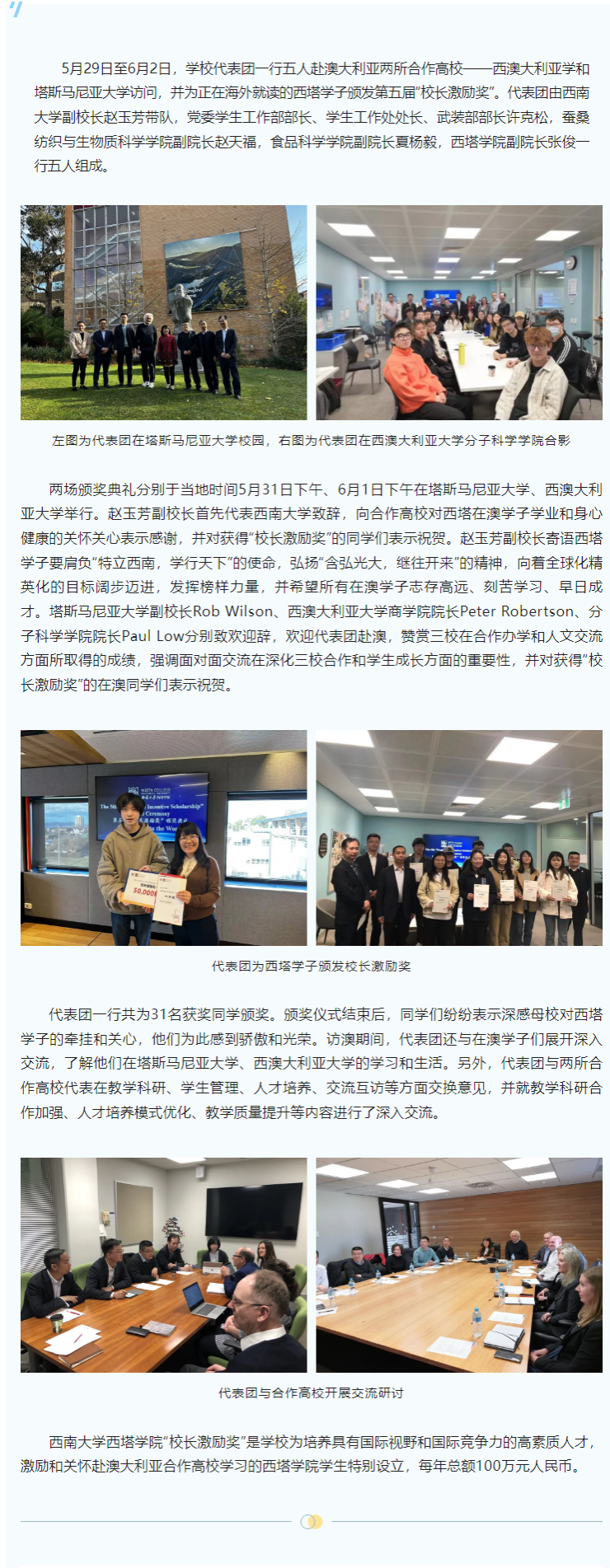 集团代表团赴澳大利亚颁发太阳网集团tcy8722第五届董事长激励奖