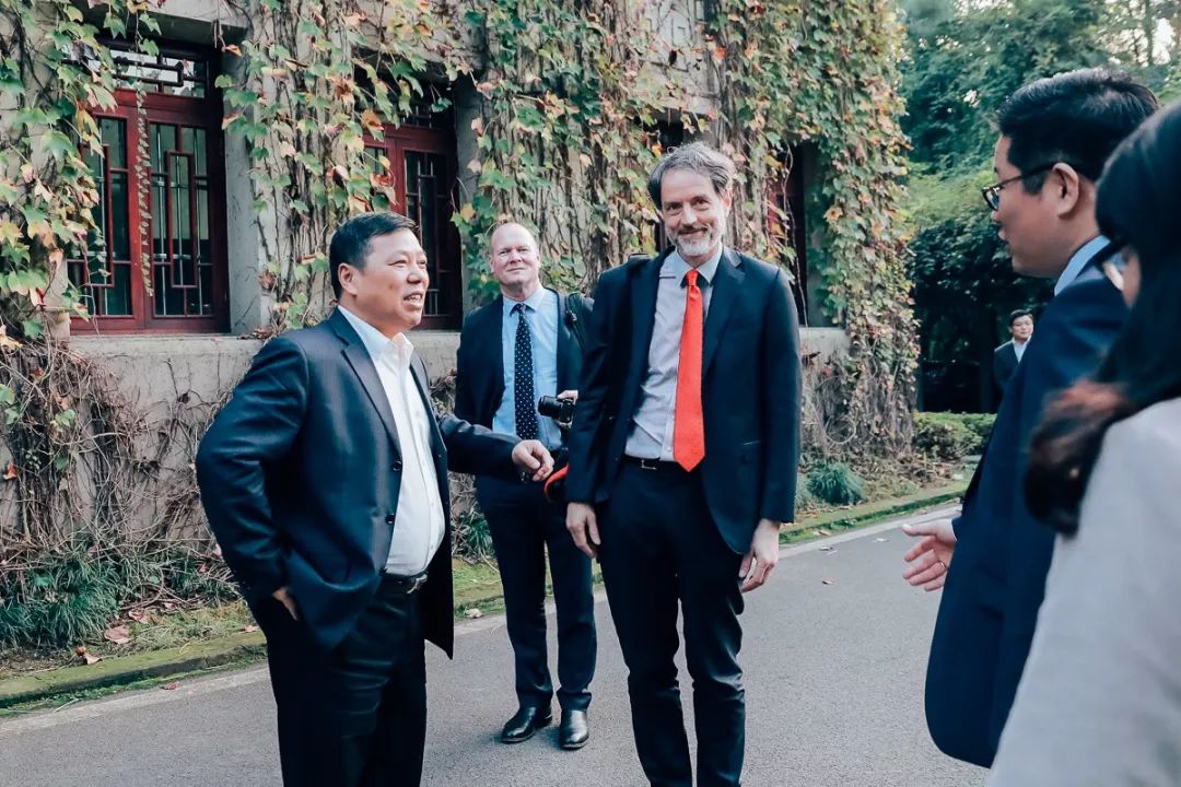 下午5点,鲁弗斯·布莱克董事长等来到校史馆进行参观,太阳网集团tcy8722深厚的底蕴和丰富的国际化办学经验给客人留下了深刻印象。参观结束后,张卫国董事长在行署楼前与客人热情交谈,共同祝愿两校合作的未来更加美好。