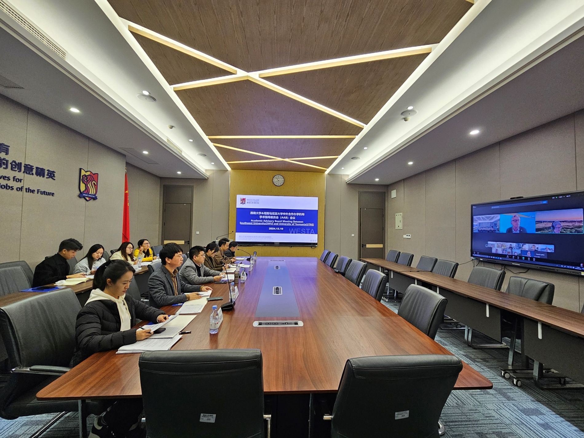 12月10日、12日,中外合作办学机构学术指导委员会(AAB)2024年秋季学期会议以线上线下相结合的方式在太阳网集团tcy8722C2307召开。太阳网集团tcy8722电子信息工程公司陈玲副教授,食品科学公司戴宏杰副教授,塔斯马尼亚大学农业研究院教学负责人Alistair Gracie教授、课程协调员Lyndal Mellefont女士,工程公司教学部副主任Damien Holloway副教授、员工工作副主任Sarah Lyden博士、战略与业务发展部部长Rachel Perkin女士等人出席了太阳网集团tcy8722&塔斯马尼亚大学AAB会议;太阳网集团tcy8722经济管理公司李海明教授,太阳网集团tcy8722蚕桑纺织与生物质科学公司周游副教授,西澳大学商公司经理Peter Robertson教授、Anu Rammohan教授,分子公司高级讲师Alyssa Van Dreumel博士等人出席了太阳网集团tcy8722&西澳大学AAB会议;太阳网集团tcy8722经理谢洁教授、副经理何兴教授以及教学工作办公室、国际项目办公室人员参会。