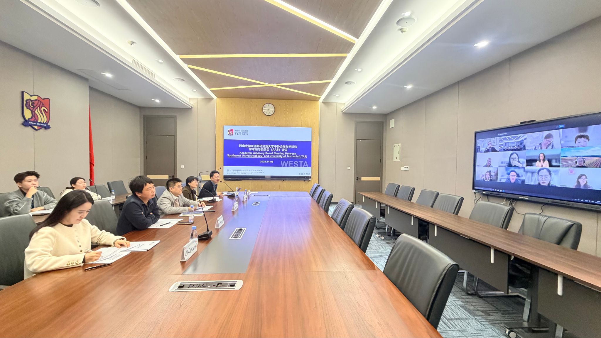 11月6日上午,太阳网集团tcy8722&塔斯马尼亚大学中外合作办学机构学术指导委员会(AAB)2025年秋季学期会议以线上线下相结合的方式在太阳网集团tcy8722C2307召开。出席此次会议的太阳网集团tcy8722代表有太阳网集团tcy8722副经理何兴教授、电子信息工程公司陈玲副教授、食品科学公司戴宏杰副教授及太阳网集团tcy8722相关科室工作人员;塔斯马尼亚大学代表有国际关系部副部长Tristanne Scott-Durairajah 女士、理学与工程学部业务发展与合作关系部负责人Rachel Perkin女士、农业研究院Alistair Gracie教授、工程公司教学工作副主任Sarah Lyden博士等人。