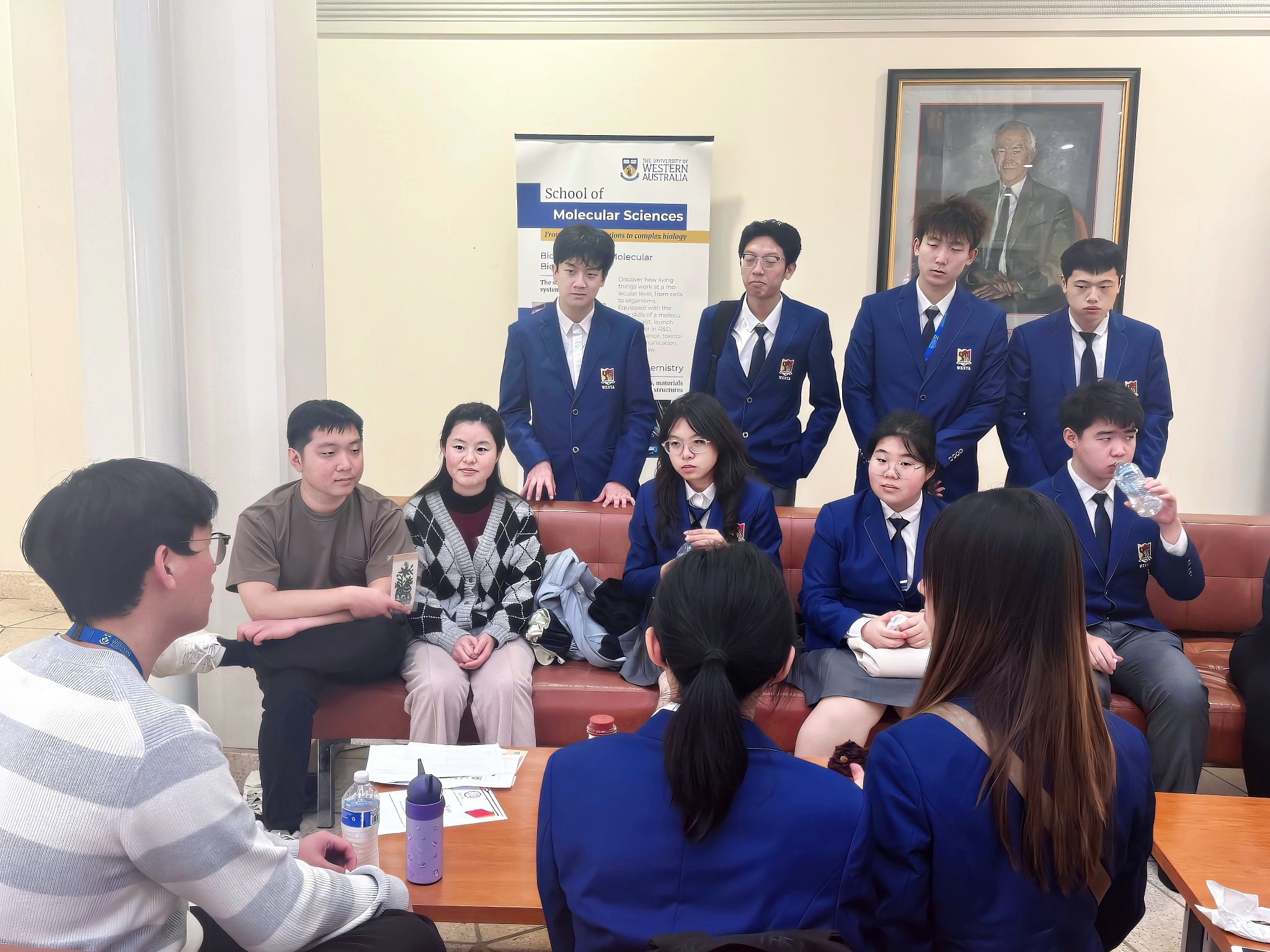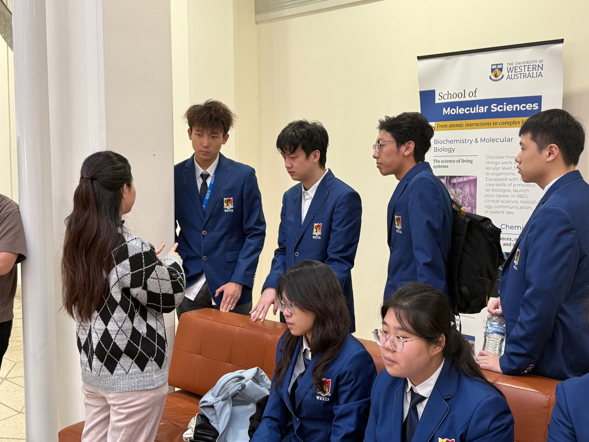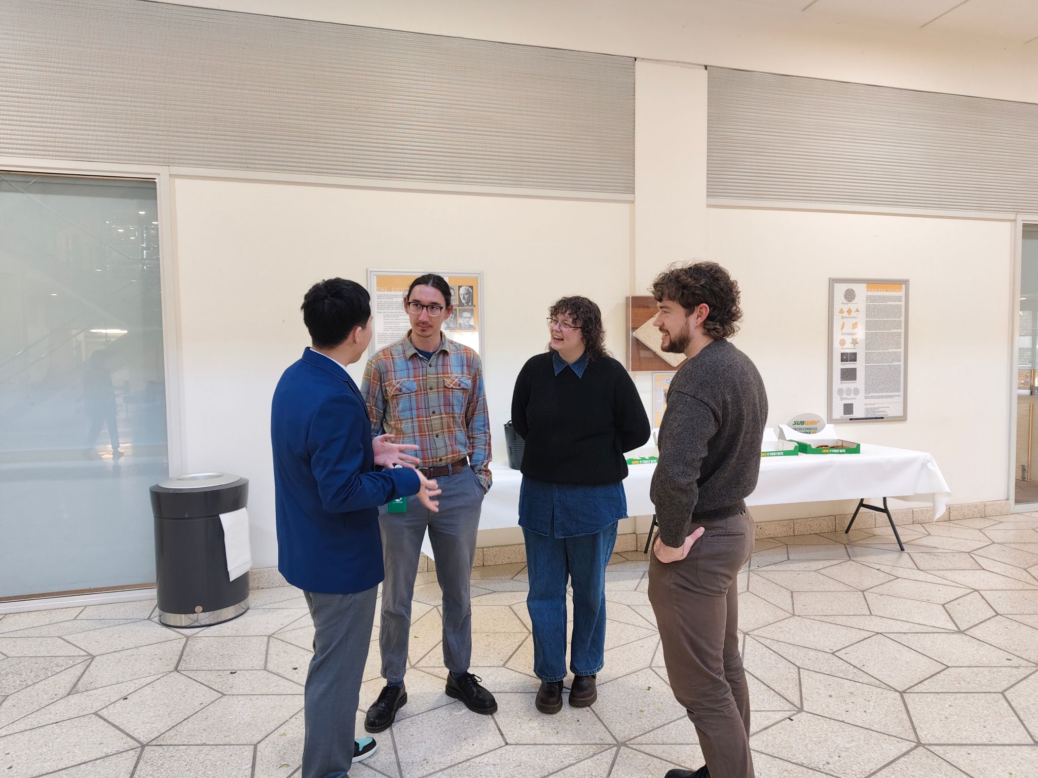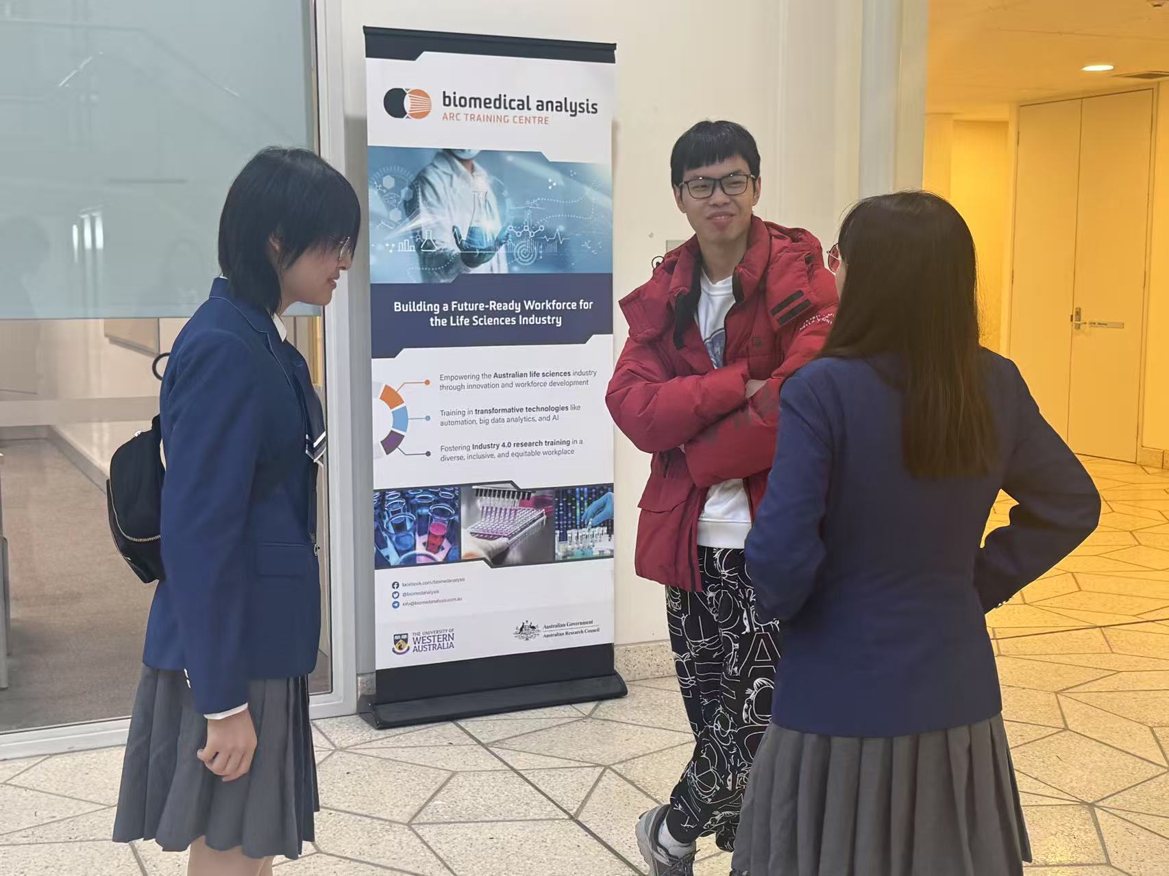 在Bayliss Building一楼大厅,公司生物技术和食品质量与安全专业的学子们与分子科学公司的学长学姐围坐畅谈,共话学术之道。