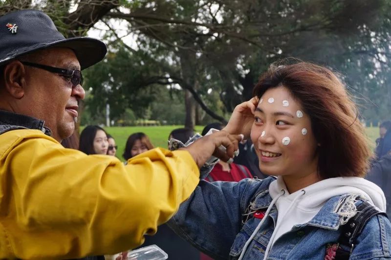 滢滢水畔,蓄着白胡子的Aboriginal Elder即将为我们进行一场特殊的欢迎仪式。用岩石粉在男性与女性脸上画上颇具神秘色彩的图案,这是澳洲土著最古老神秘的祝福仪式。