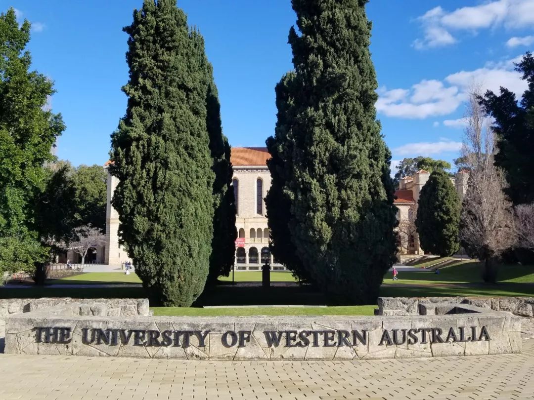 抵达西澳大学的标志性建筑,蓝黄主色的钟盘,黑色罗马数字的时间,庄重而威严。
