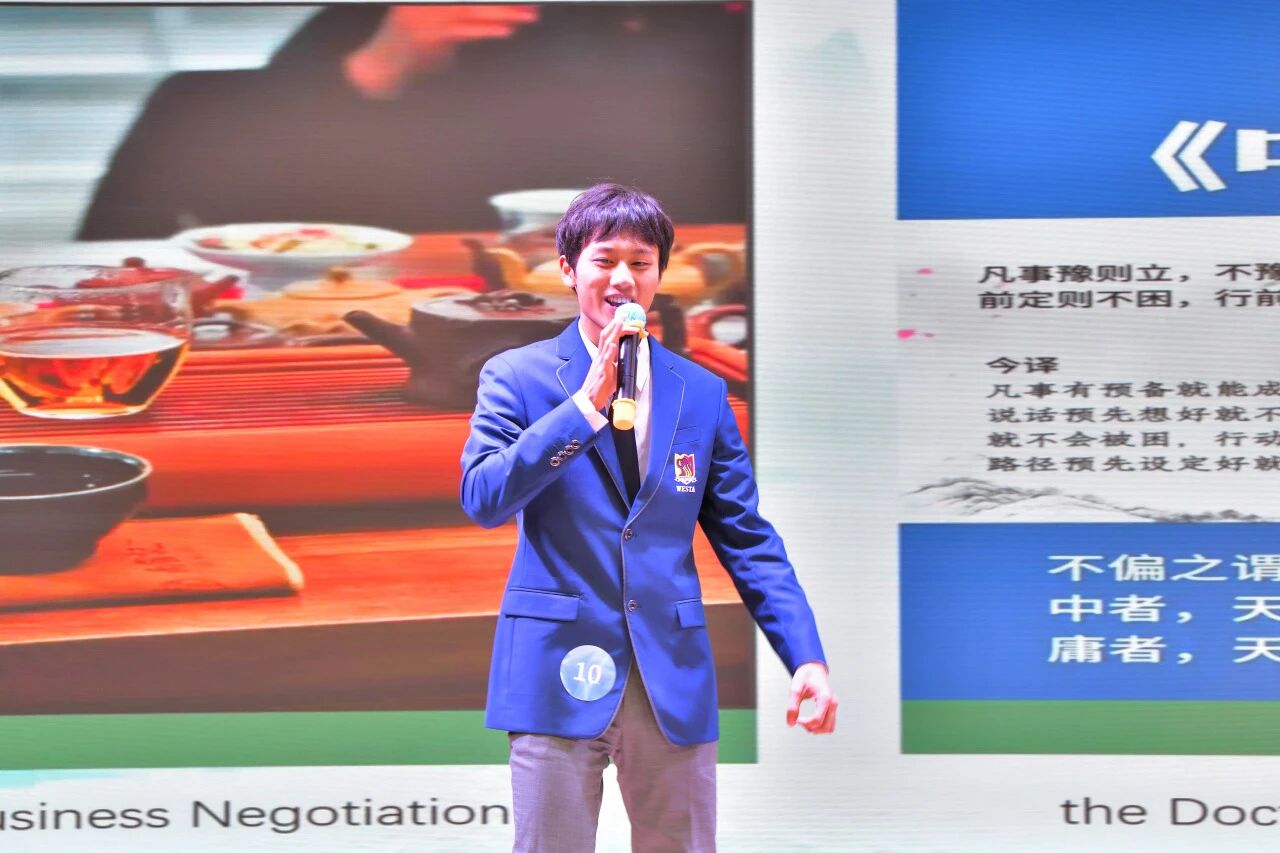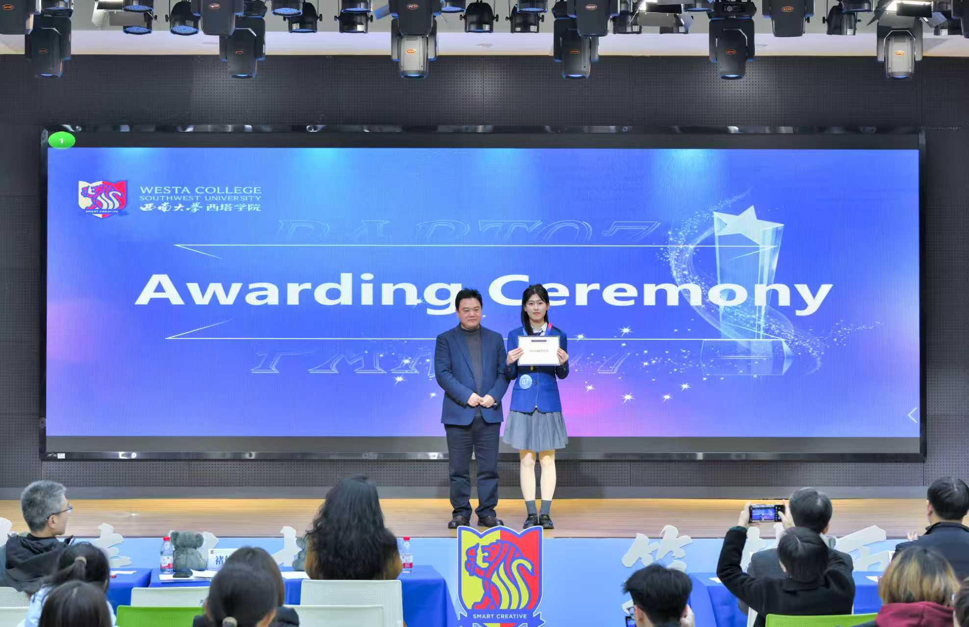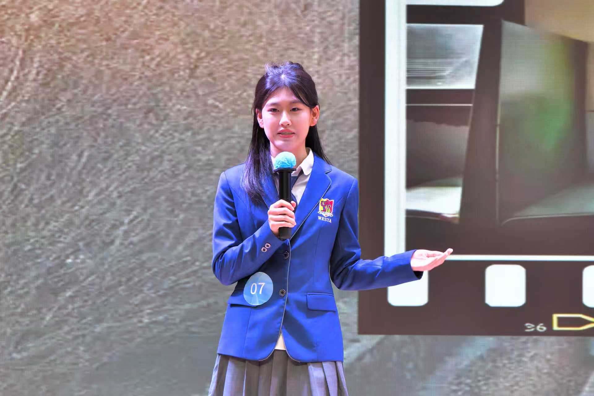 决赛共设置英语主题演讲、英语趣味配音和即兴演讲三个环节。第一环节以“Westa's Voice, China's Stories”为主题,选手们通过视频、图片及现场表演等形式全方位地展现对于传统文化及时代发展的认识,演讲涵盖中国舞、变脸、茶文化、刺绣、簪花、乡村振兴等多个主题,兼具文化厚度与时代温度,既彰显了青年一代对中华优秀传统文化的热爱与传承担当,更传递出当代学子坚定文化自信、主动讲好中国故事的青春态度。