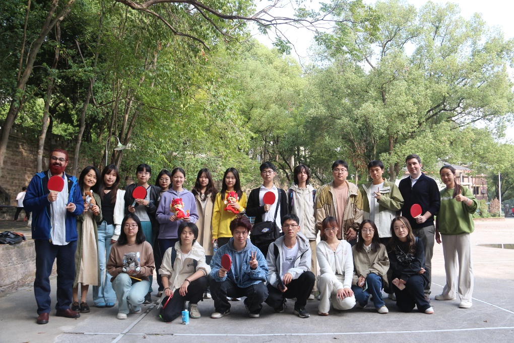 师生们首先快速熟悉了乒乓球的常用英语,用全英文讨论乒乓球规则,为接踵而来的比赛蓄能。然后,大家组队酣战,观众们用英语加油助威,现场不仅是体能与技巧的博弈,更是英语实战的舞台。小组们在比赛之前充分进行战术商讨、积极与外教Luke、Basem互动、团队默契逐渐形成。最后,外教Luke、Basem为获胜的5支获胜队伍颁发了精美礼品。