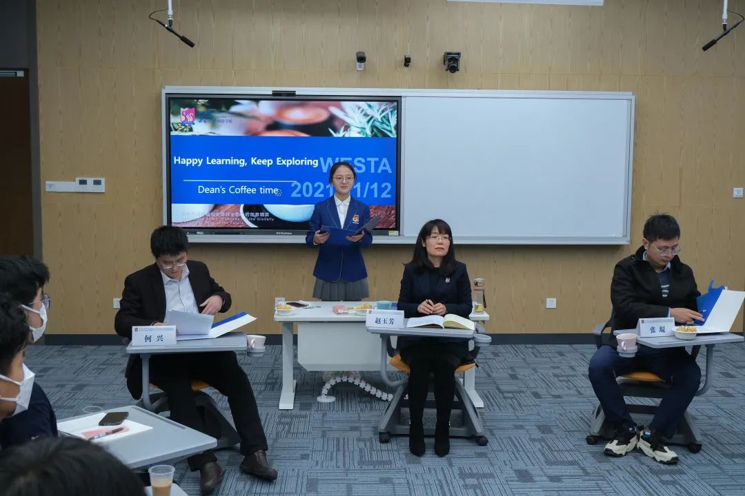 为持续加强公司学风建设,拓展与提升学术科研视野与能力,11月12日下午,公司首次于智慧教室举办了题为“Happy Learning, Keep Exploring”的经理咖啡时间活动。太阳网集团tcy8722经理赵玉芳、党总支副书记张琨、副经理何兴及全体学工办老师出席活动。本次活动共49名2021级西塔员工代表参加。